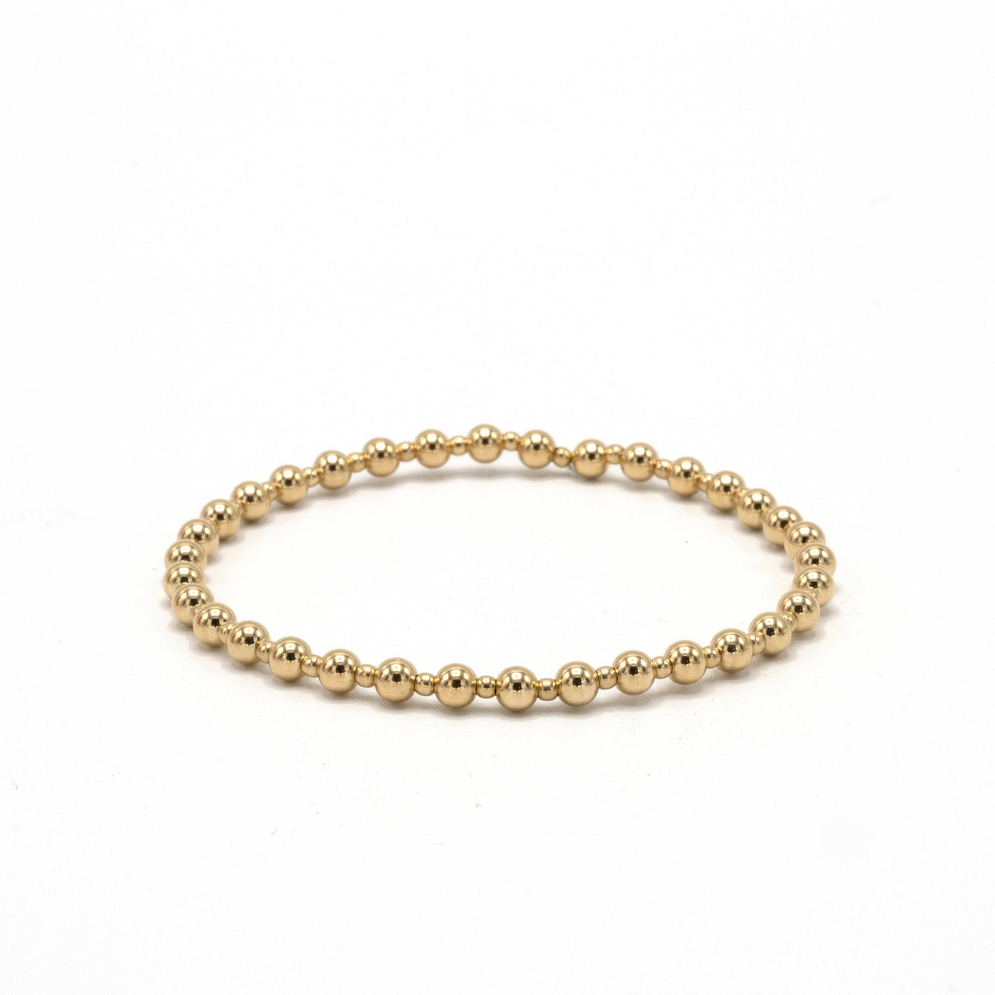 Enhance your bracelet collection with our 14k gold filled stretch bracelet featuring a unique 4-2-4mm mixed bead design. Perfect worn alone or layered for added style. This piece is part of the erin gray waterproof collection and comes in 6.5" and 7" sizes for a comfortable fit.