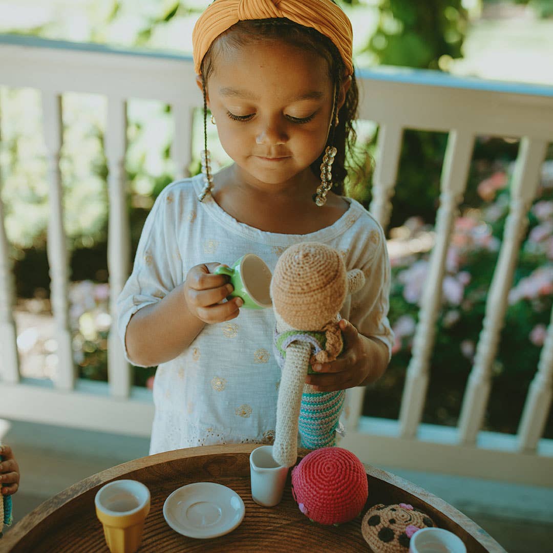 This stuffed toy is the perfect baby doll to grab and go, whether it's for a stroll in the sunshine or a trip to the beach. Fair Trade. Ethically Sourced. Handmade. Durable. Machine Washable.