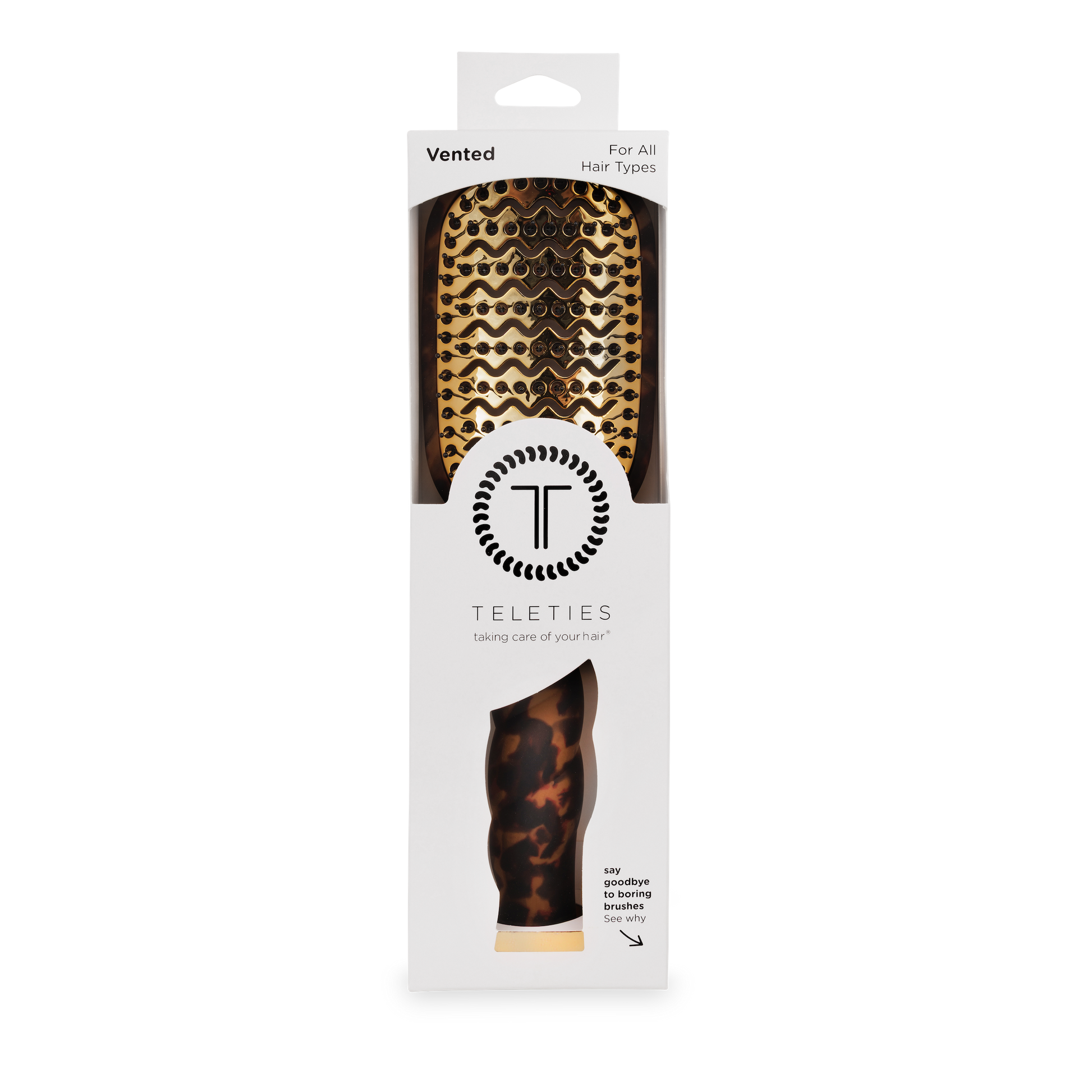 The Vented Brush in Tortoise is your new secret to faster, smoother blowouts. Pairing a Quick-Heat Aluminum Plate that heats up in seconds and distributes heat evenly with a vented design to enhance air flow, this vent brush works perfectly with your blow dryer to cut down on styling time without cutting corners on results.