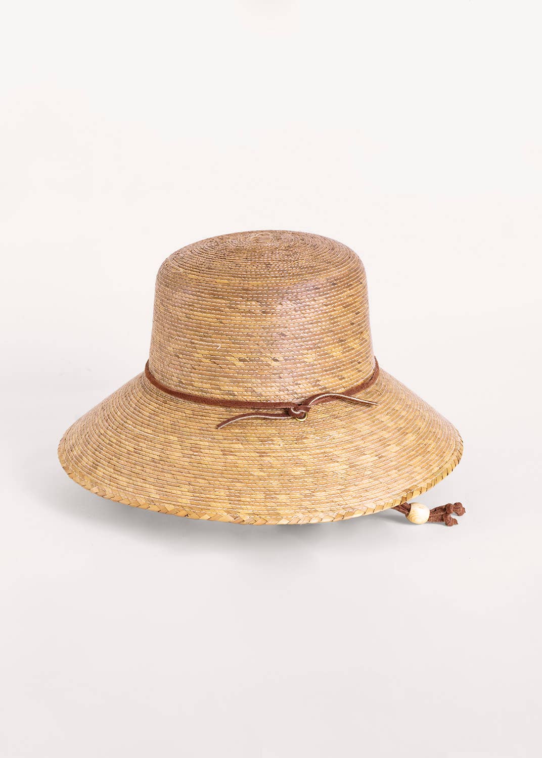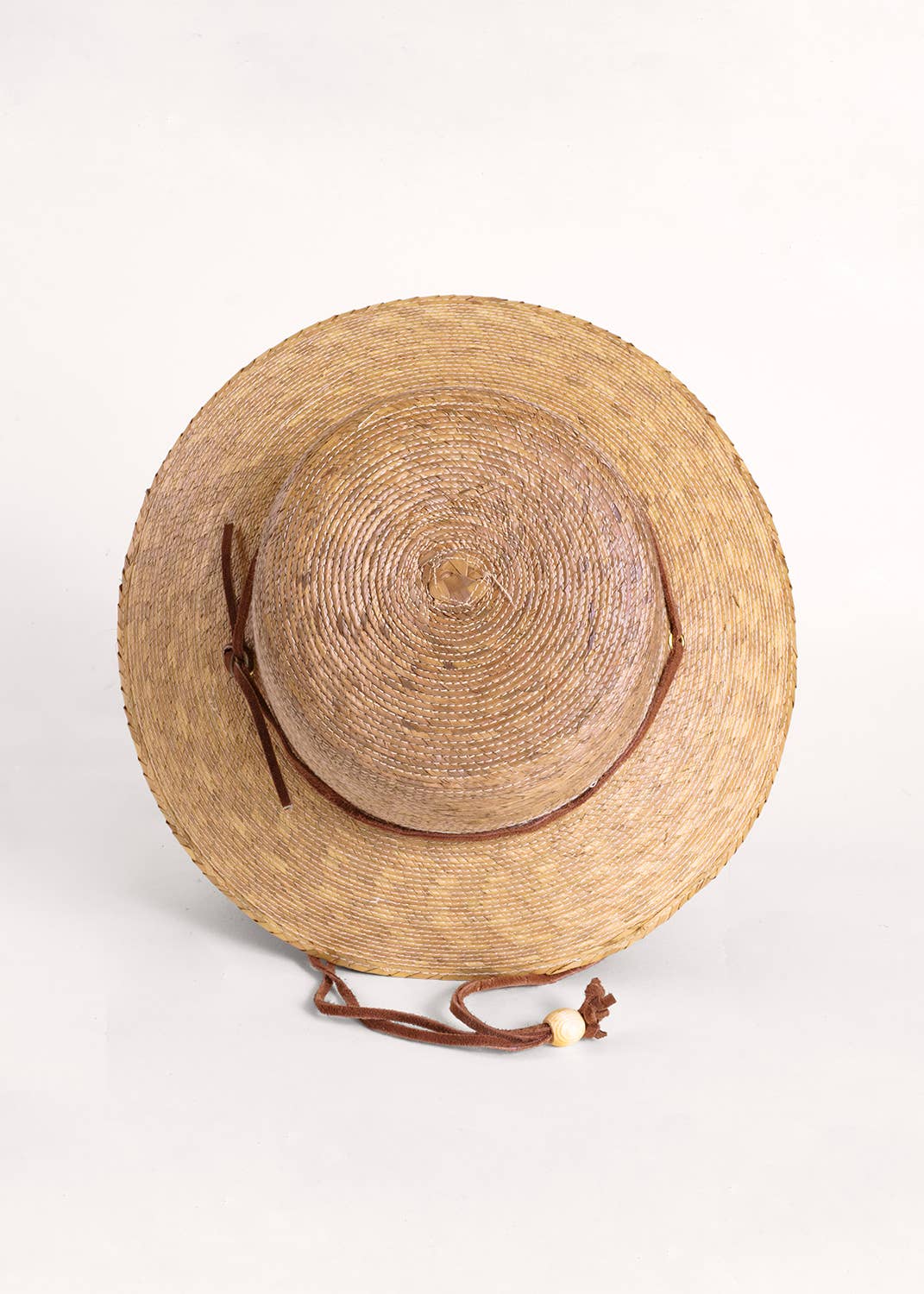 hand woven palm approx. 3" brim grosgrain inner band leather chinstrap one size The Child Abby hat is designed with a wide down sloping brim to provide deep protective shade from the sun's harmful UV Rays. Sun protection is crucial for delicate young eyes and skin. The leather chin strap keeps this hat safe and secure on an active child's head. For over 30 years Tula has produced beautifully hand-woven UPF 50+ sun protective palm straw hats that unite the traditional art of weaving with contemporary hat design. Tula hats are a Fair Trade product. Variations in color and weave are inherent in the natural palm. The color of the hats will vary from year to year.