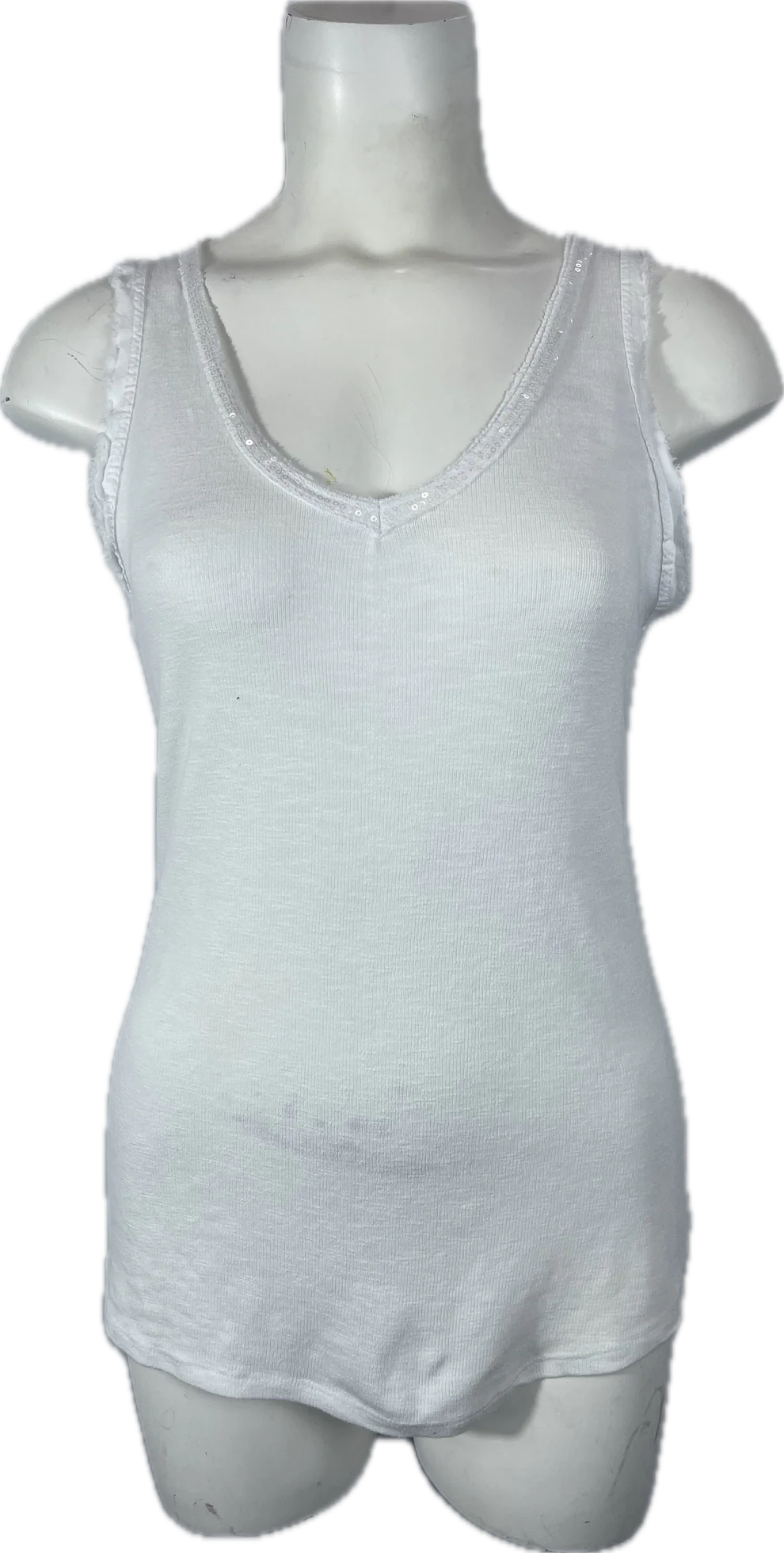 Introducing Sequin V-Neck Tank Tops - a stylish and comfortable addition to your wardrobe. With intricate sequin details around the neckline and a flattering v-neck tank top cut, this top is perfect for any occasion. Upgrade your look with this versatile and fashionable piece.