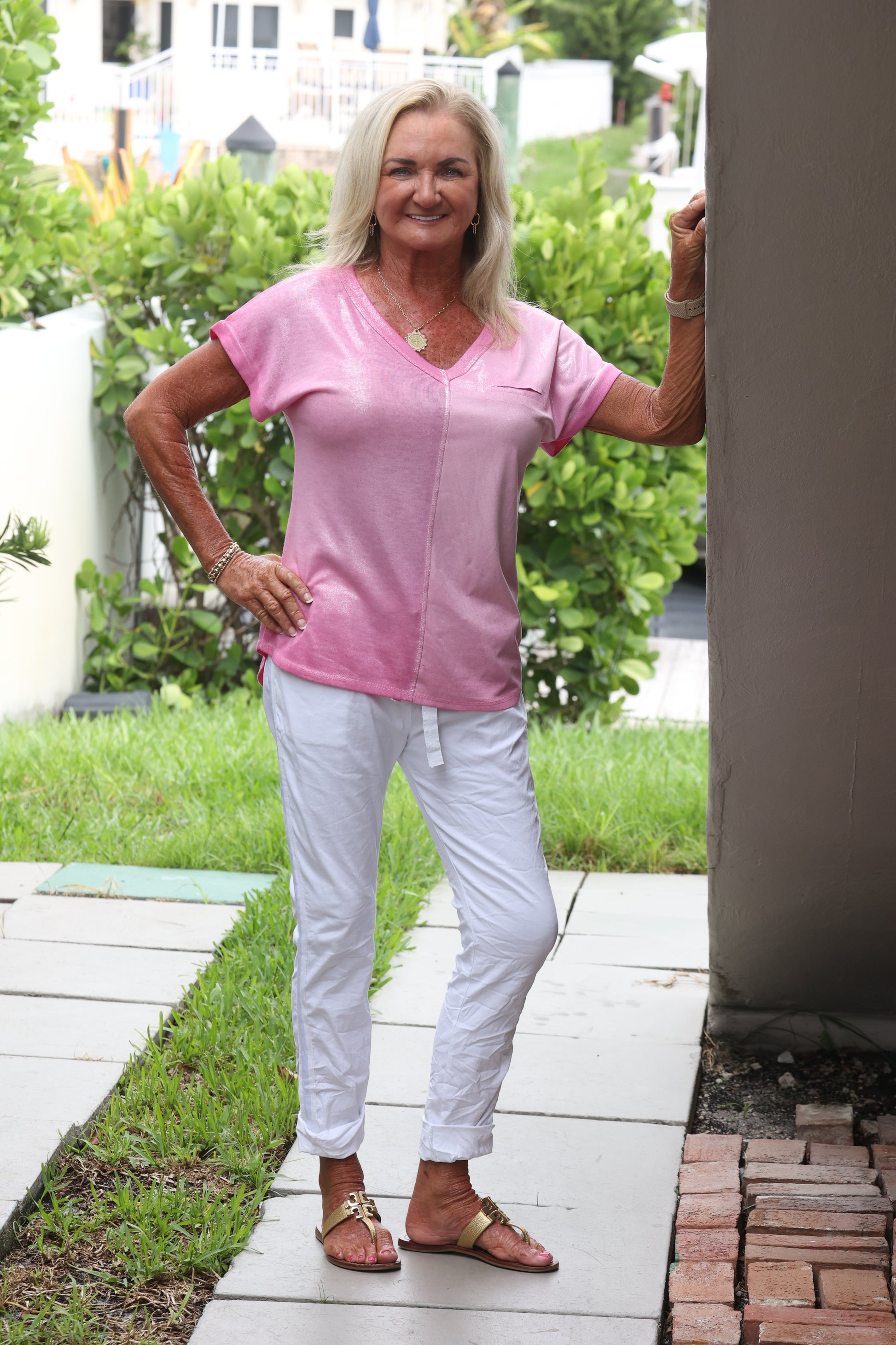 urban Mangoz - Shimmer V Neck Short Sleeve Top